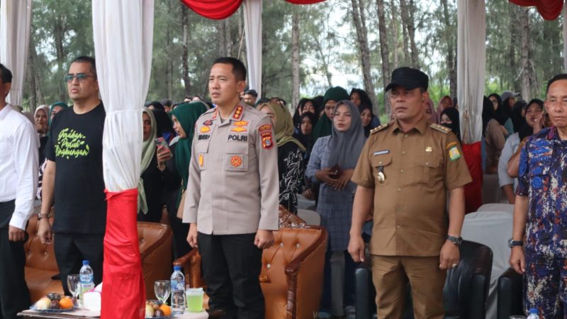 Setelah acara ini dibuka, dilanjutkan penanaman mangrove oleh semua yang hadir, termasuk Bupati Syech Muharram, Kapolresta Kombes Pol Joko Heri Purwono SH, Dir Polair Kombes Pol Prihatmatka.