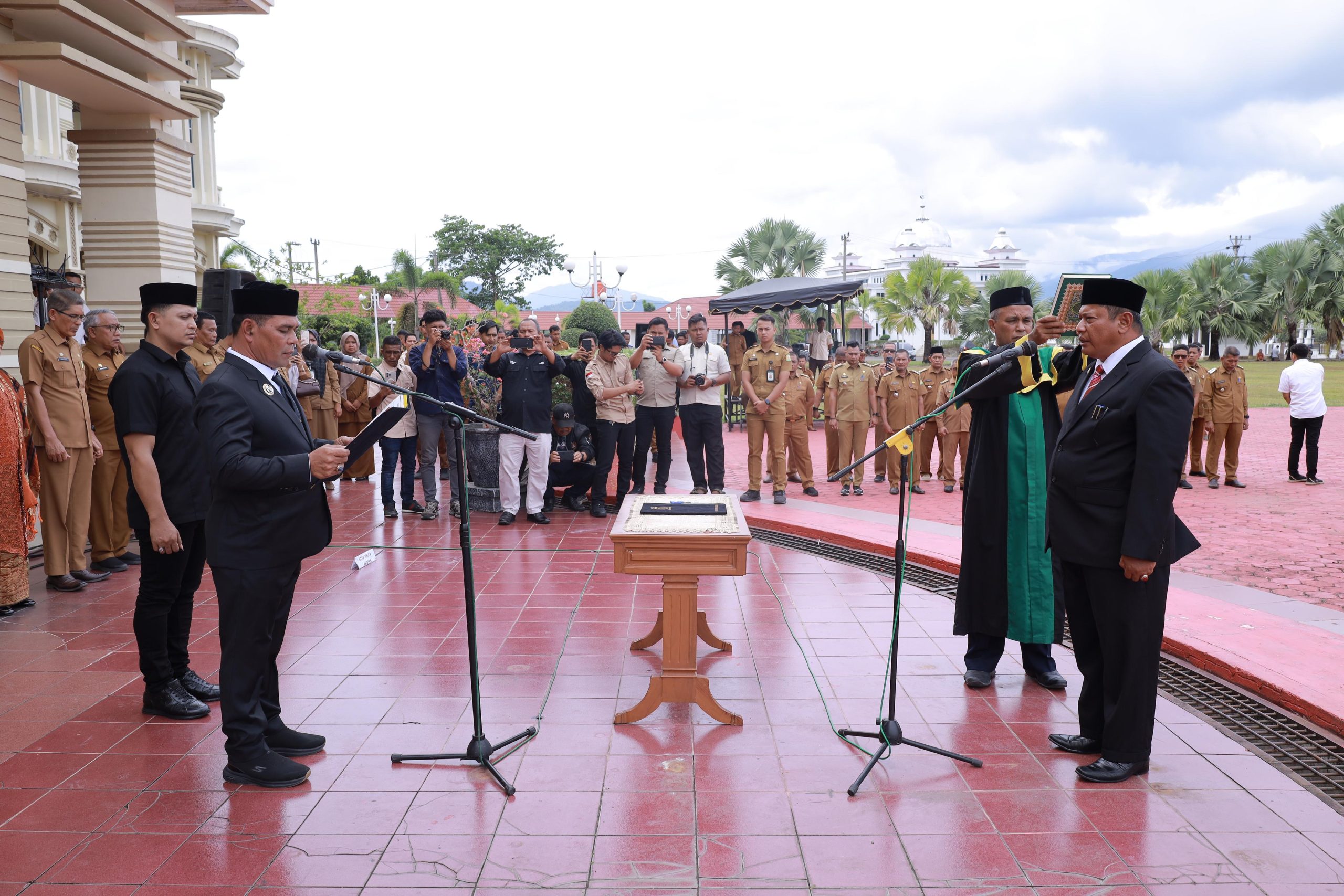 Kota Jantho — Bupati Aceh Besar, H. Muharram Idris yang akrab disapa Syech Muharram, resmi melantik Bahrul Jamil, SSos, MSi sebagai Sekretaris Daerah (Sekda) Aceh Besar secara definitif, Pelantikan dan pengambilan sumpah jabatan pimpinan tinggi pratama tersebut digelar di halaman Kantor Bupati Aceh Besar, Kota Jantho, Senin (14/07/2025).