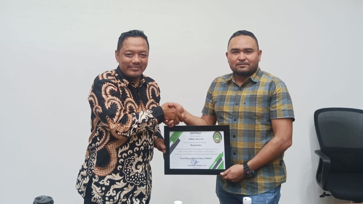 Sarasehan ini menghadirkan tiga narasumber kompeten, yakni Said Fachdian, SE (Kepala Bidang Pengelolaan Barang Milik Daerah pada Badan Pengelolaan Keuangan Kabupaten Aceh Barat), Dr. Khairuddin Ishaq, S.Pd., M.Ak (akademisi), dan Ahmad Yani, S.A.B (anggota DPRK Aceh Barat).