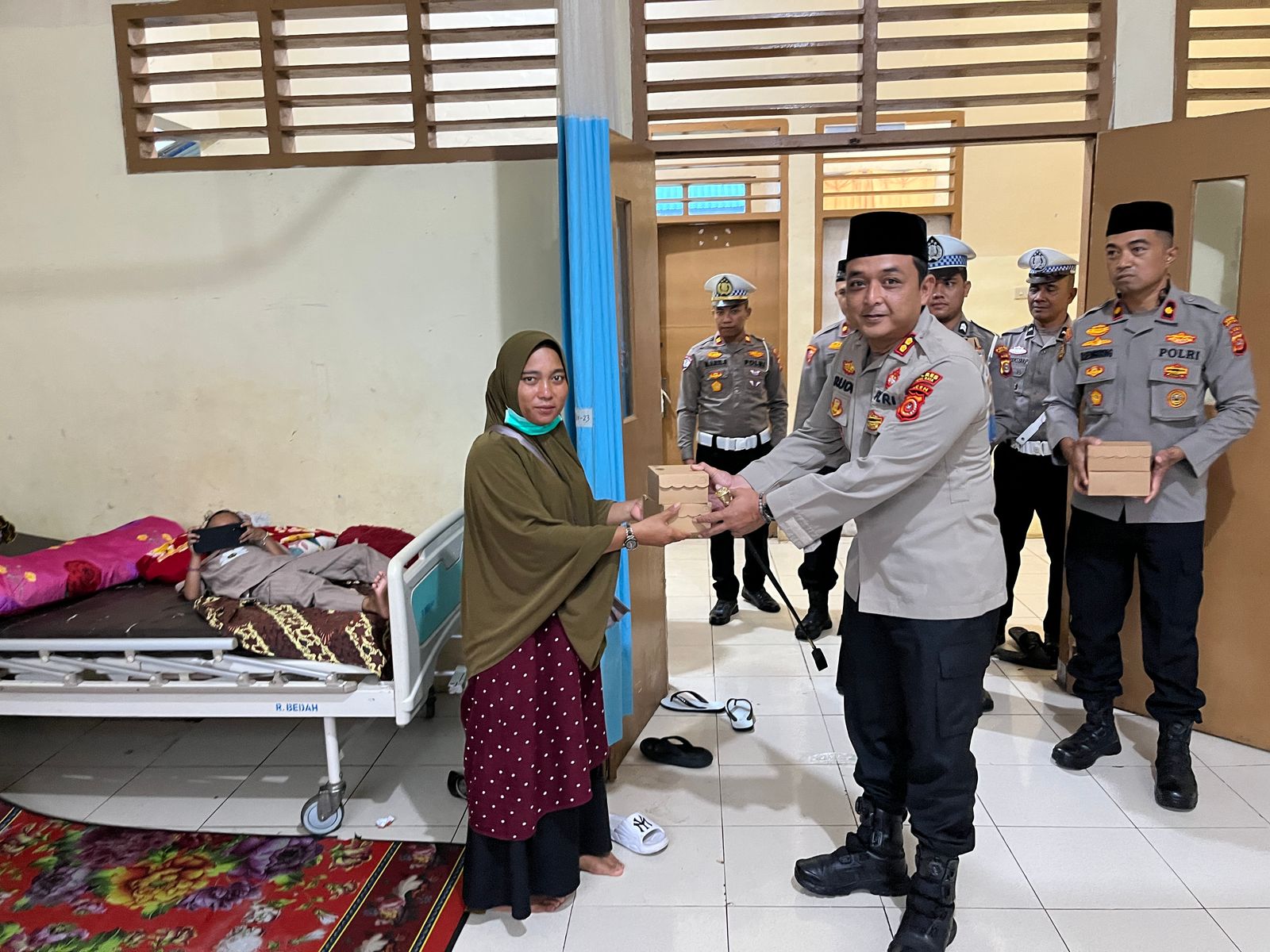 Kapolres AKBP Rudi Saeful Hadi, S. i. k., bersama jajaran kepolisian setempat secara langsung mendatangi ruang-ruang perawatan, membagikan takjil berupa makanan ringan dan minuman untuk berbuka puasa kepada pasien yang sedang dirawat, serta para tenaga medis yang tetap bekerja keras dalam memberikan pelayanan kepada masyarakat.