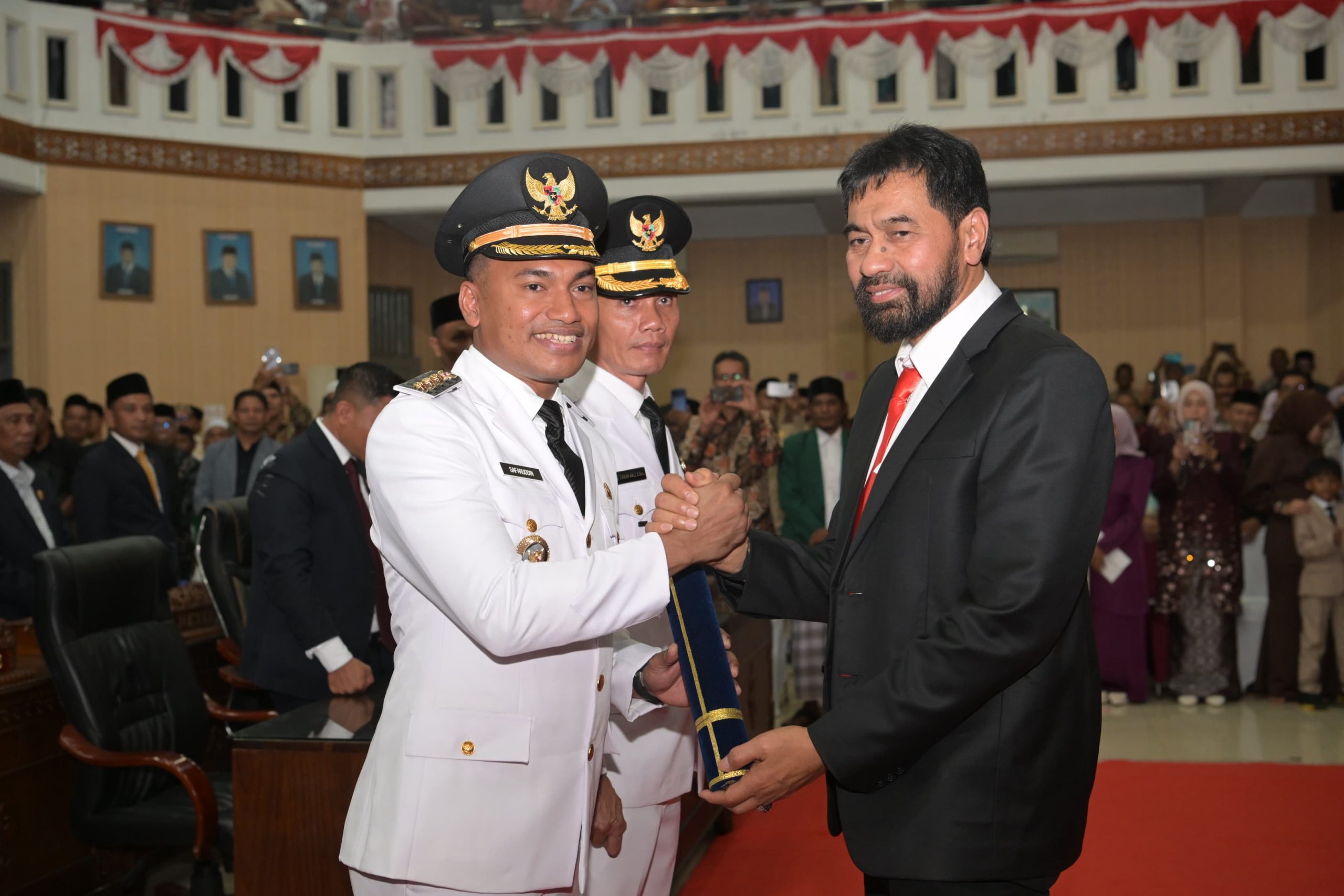 Gubernur Aceh, H. Muzakir Manaf, melantik Bupati dan Wakil Bupati Aceh Barat Daya (Abdya) periode 2025-2030, Safaruddin dan Zaman Akli,  di Kantor DPRK Abdya, Minggu malam,(16/02/2025).