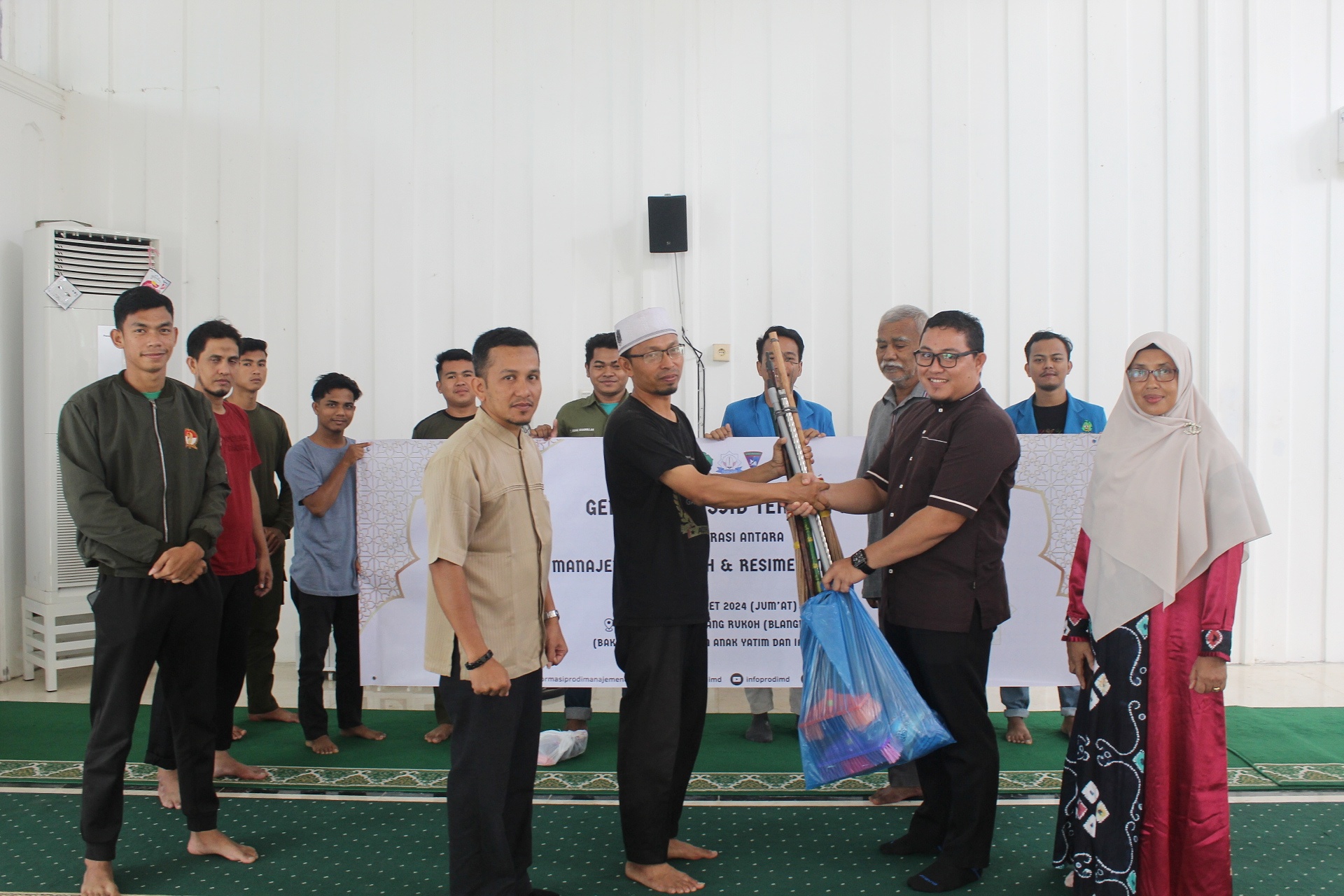 Bentuk kegiatan yang dilaksanakan pada hari ini (Jumat 22 Maret 2024) yang dimulai dari pukul 09.00 WIB berupa kegiatan membersihkan lingkungan masjid dengan melibatkan 15 orang mahasiswa, dosen, dan pengurus BKM Masjid. Kemudian pada sore harinya dilanjutkan dengan kegiatan penyerahan santunan untuk 20 anak yatim dan berbuka puasa bersama, yang didahului dengan kegiatan Tausiyah menjelang berbuka puasa.