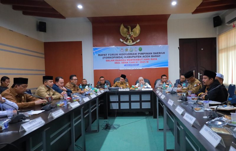 Acehpost.id, Meulaboh – Dalam rangka menyambut Hari Raya Idul Adha 1446 H/2025 M, Pemerintah Kabupaten Aceh Barat menggelar Rapat Koordinasi Pimpinan Daerah (Rakorpimda) pada Senin (26/5/2025) di aula cut nyak dhien kantor Bupati. Rapat ini difokuskan pada persiapan kebutuhan masyarakat menjelang hari besar Islam, mulai dari ketersediaan bahan pokok hingga upaya menjaga stabilitas keamanan daerah.