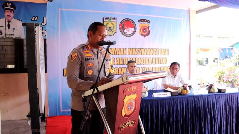 Banda Aceh – Seiring dengan berjalannya Program ” Asta Cita ” yang dicetuskan oleh Presiden Prabowo Subianto beberapa waktu lalu, Polresta Banda Aceh lakukan sosialisasi di Kampung Bebas Narkoba Lampulo, Kuta Alam Kota Banda Aceh terkait Pemberdayaan Masyarakat dan Komunitas Anti Narkoba dalam Mendukung Program Asta Cita, Senin (18/11/2024).