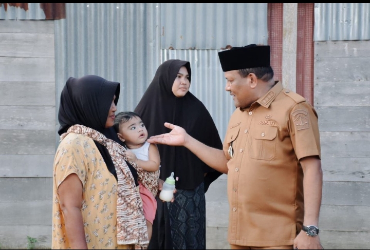 Dengan langkah tenang dan senyum tulus, Bupati Mukhlis menghampiri warga tanpa protokoler yang kaku. Ia berbincang hangat dengan seorang ibu yang menggendong anaknya, menatap penuh empati, seolah memahami beban hidup yang tak selalu terucap. Tangan yang terulur bukan hanya isyarat sapaan, tetapi simbol kepedulian dan harapan.